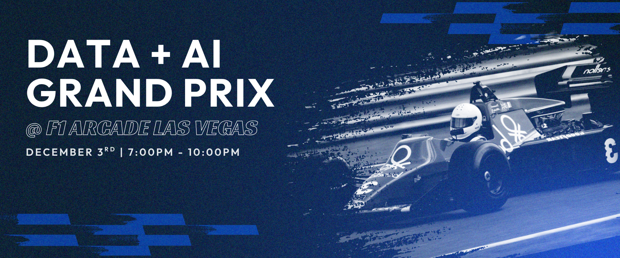Start your engines and join us for the Data + AI Grand Prix, an exclusive happy hour during AWS re:Invent! Connect with industry leaders, innovators, and data enthusiasts for a high-octane evening of networking, cocktails, and cutting-edge conversation at the F1 Arcade, Las Vegas’s premier racing and entertainment venue.